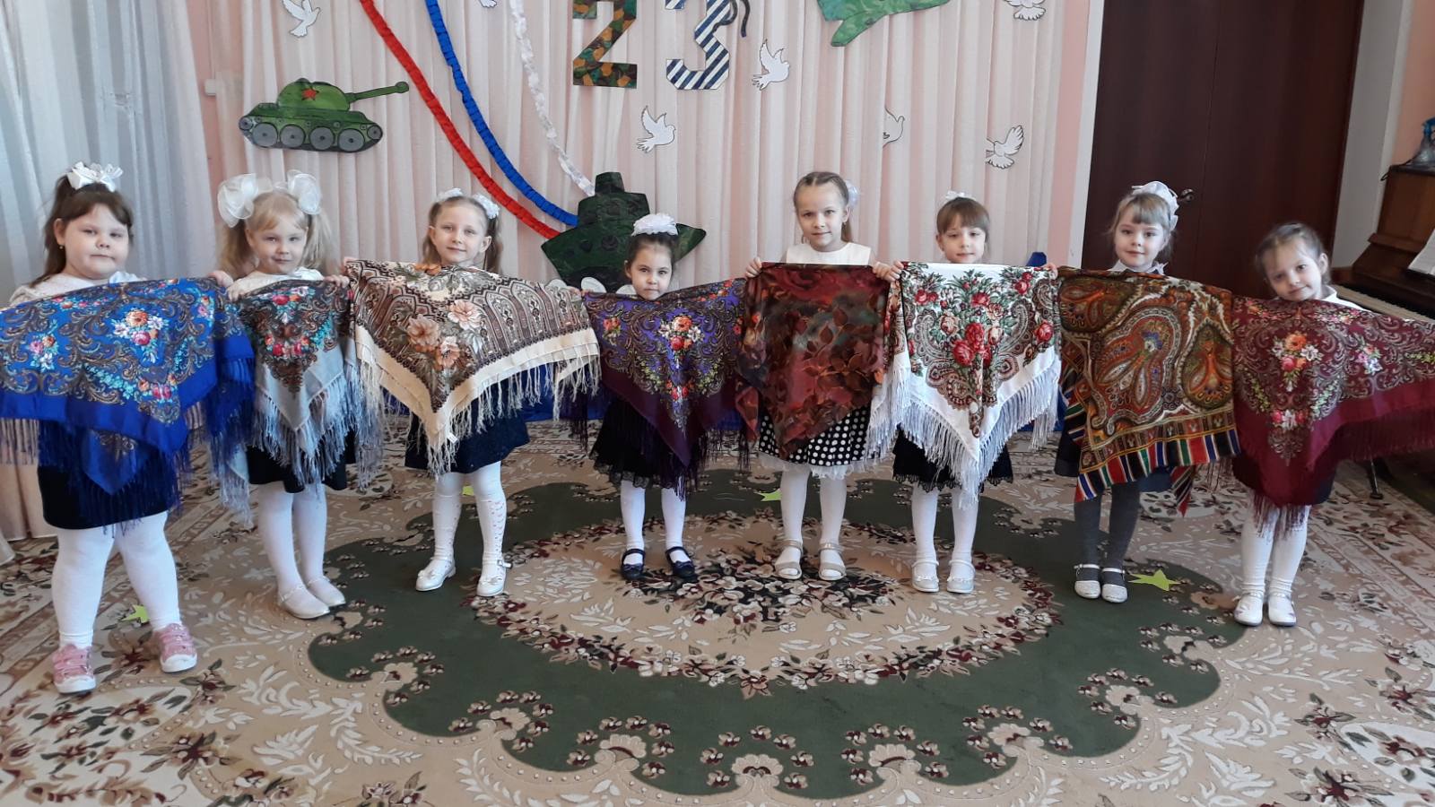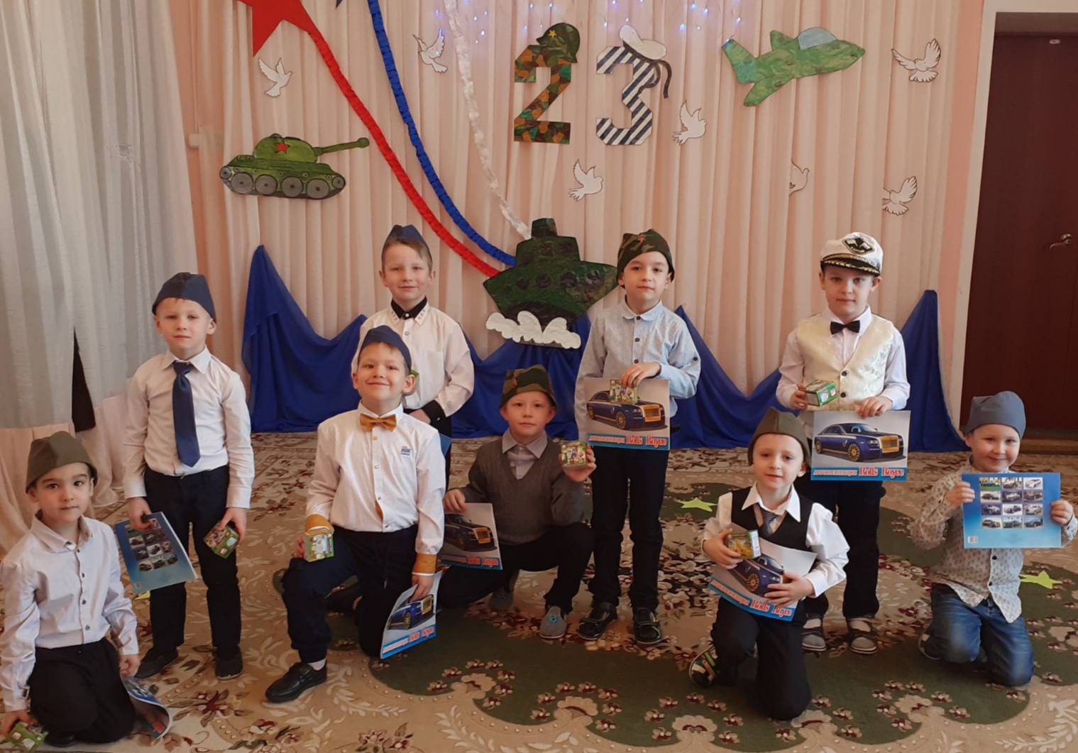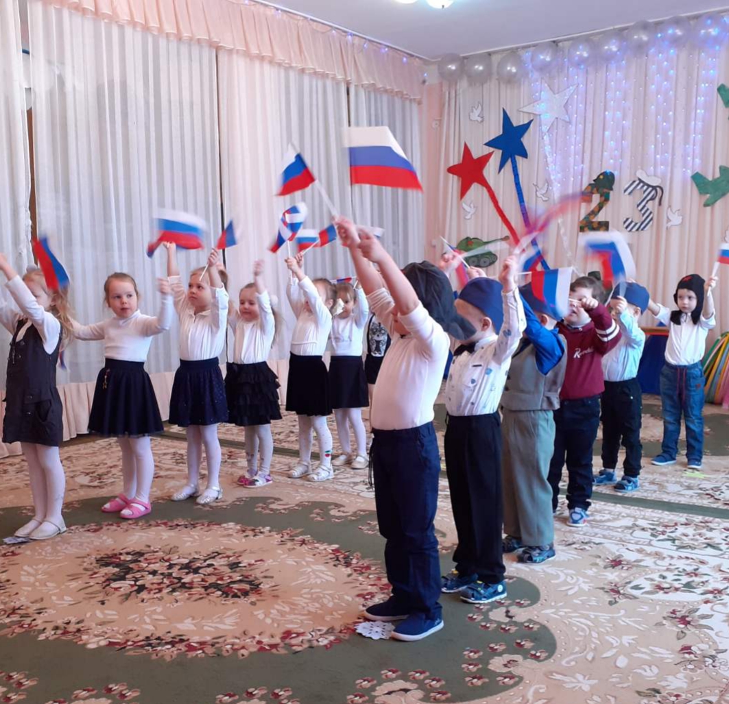 В детском саду педагоги организовали цикл мероприятий: провели с детьми беседы, тематические занятия, читали рассказы об армии, оформили фотовыставки, стенгазеты ко Дню защитника Отечества. Воспитанники подробно узнали о том, кто такие защитники Отечества, о разных родах войск, о военных профессиях и продемонстрировали практические навыки на музыкально — спортивных праздниках, которые прошли в детском саду.