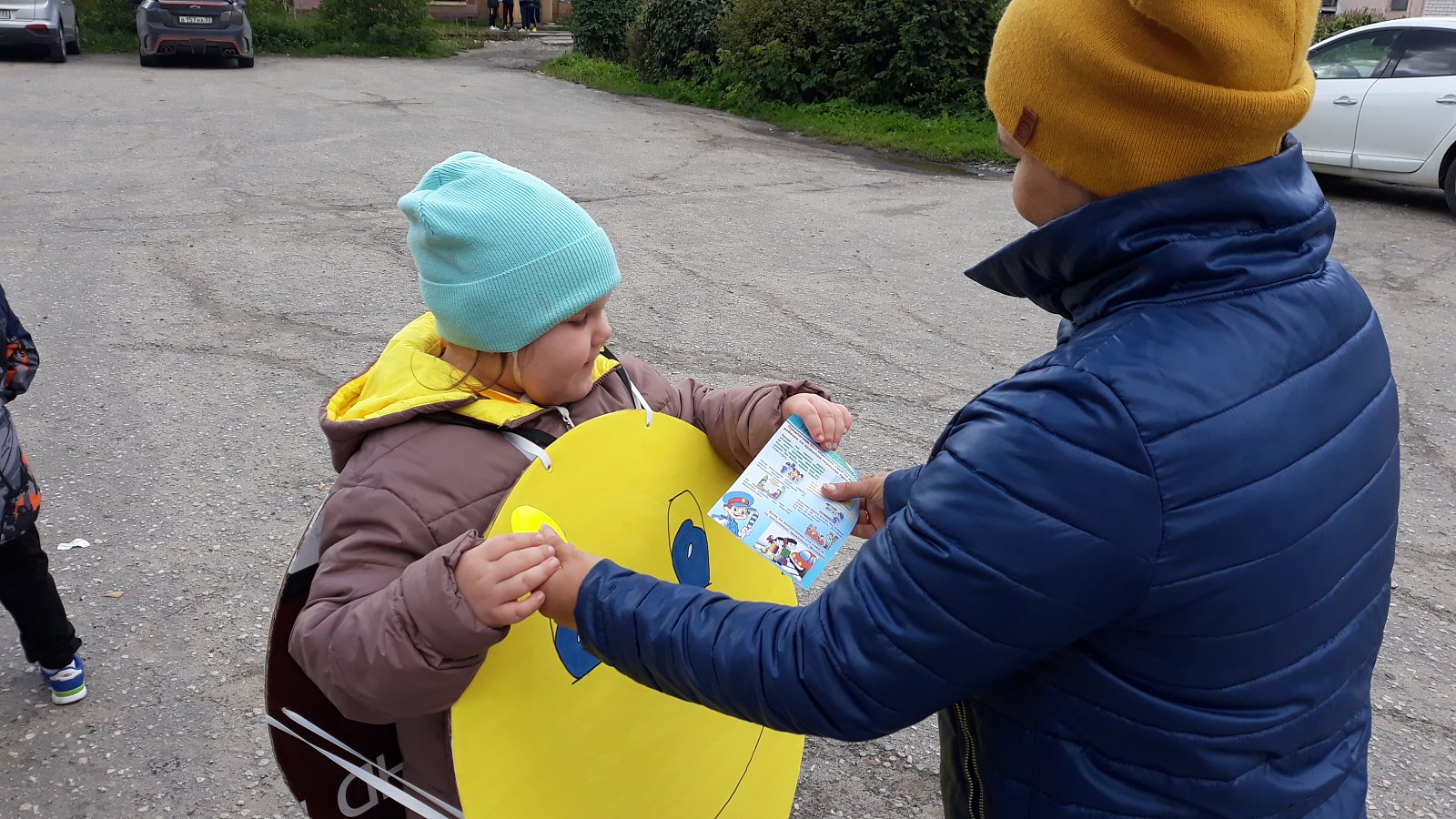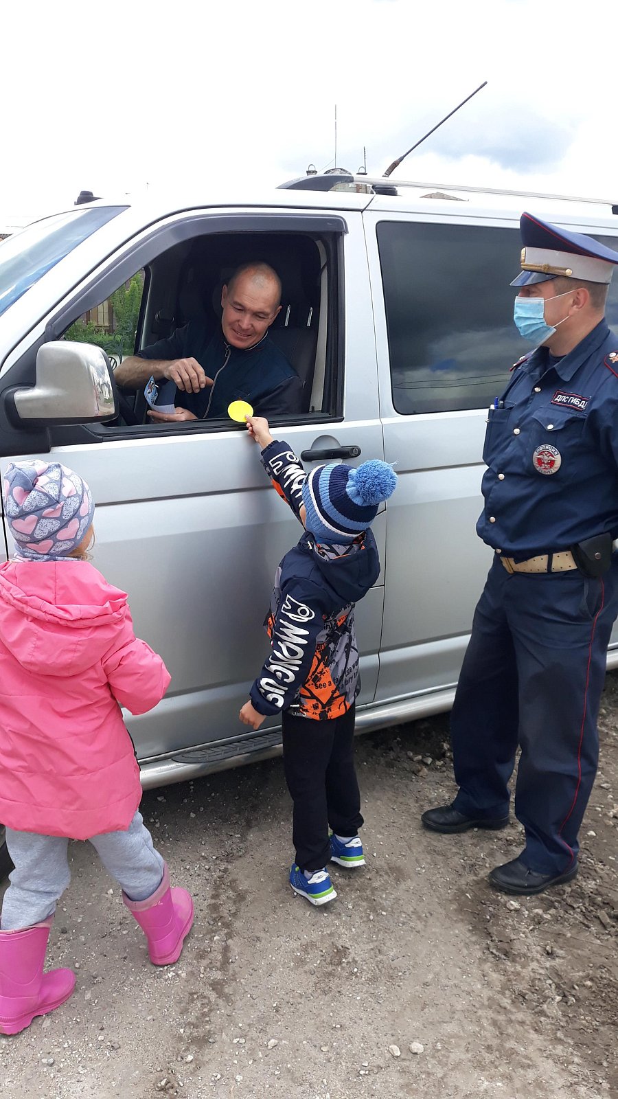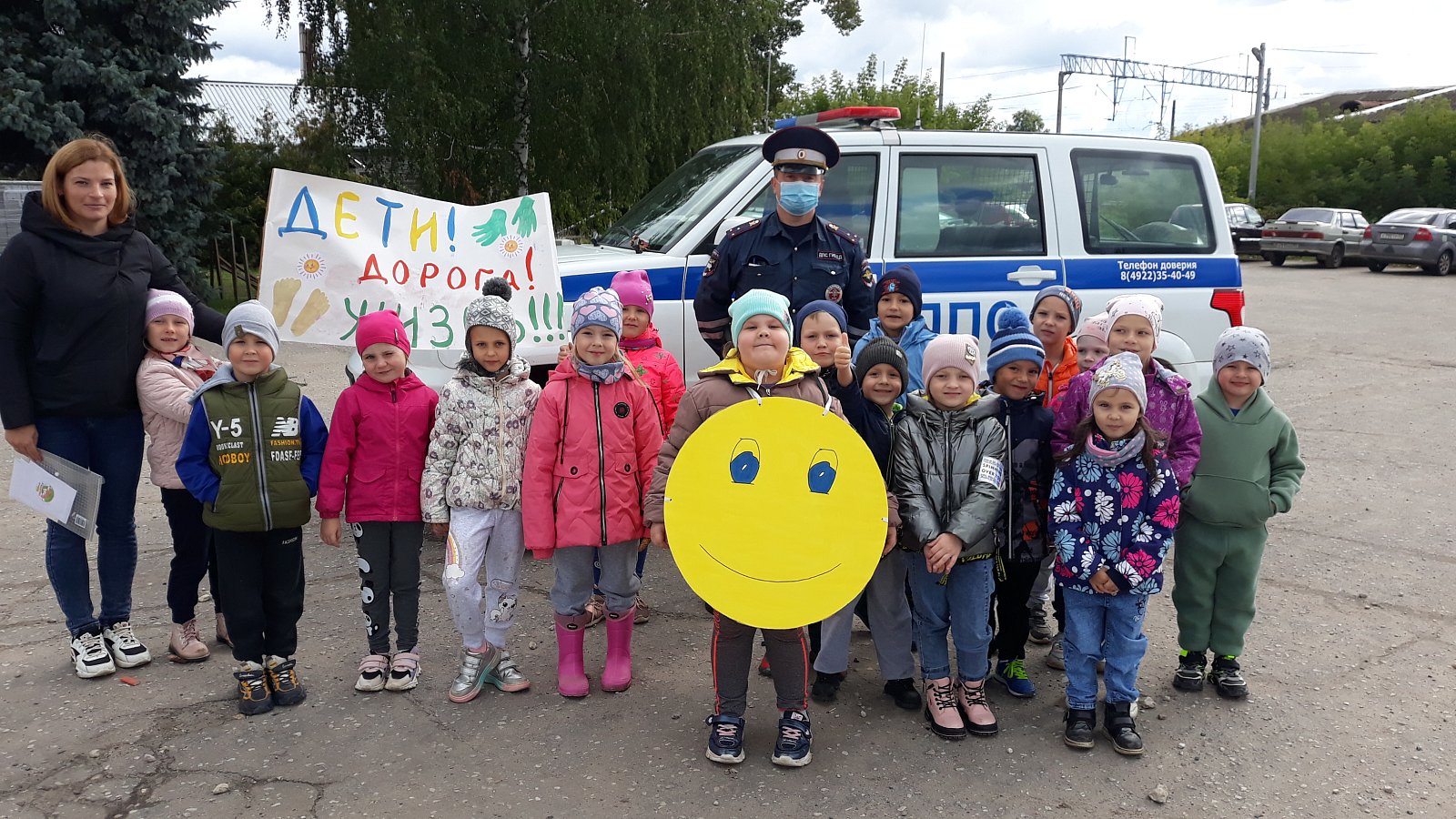 06 августа, ребята подготовительного к школе возраста, провели акцию "Внимание дети!" совместно с инспекторами ГБДД. Дети вручали памятки водителям и пешеходам , а также светоотражающие элементы в виде смайликов.