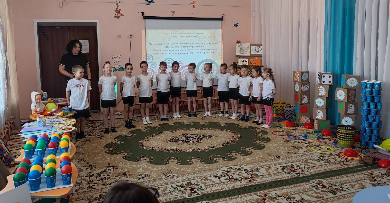 Сегодня в нашем детском саду прошло методическое объединение инструкторов физической культуры по теме "Организация коррекционной работы с детьми дошкольного возраста с использованием нейроигр и нейроупражнений"
