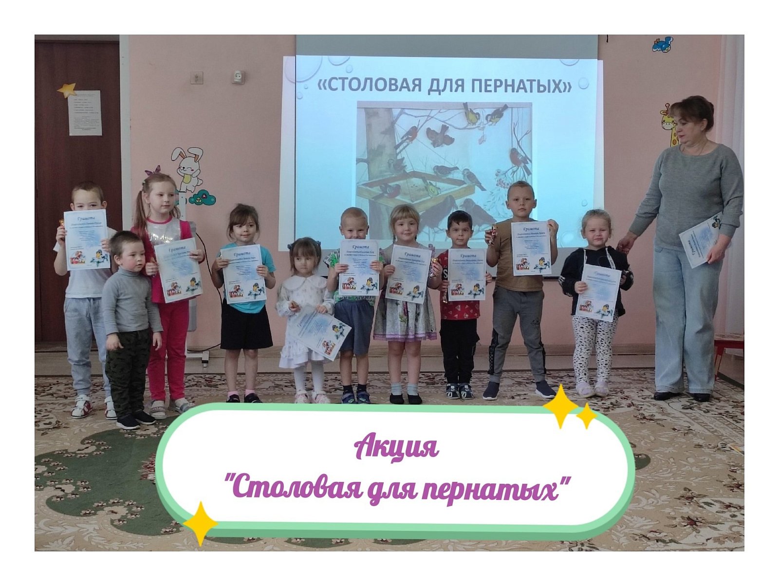 ✨???? Сегодня в нашем саду прошло награждение детей грамотами за участие и победы в конкурсах и акциях, которые проходили в первом полугодии 2024 - 2025 учебного года. Заведующий детского сада Лыкова Н.В. вручила каждому ребёнку заслуженную грамоту и сладкий подарок.