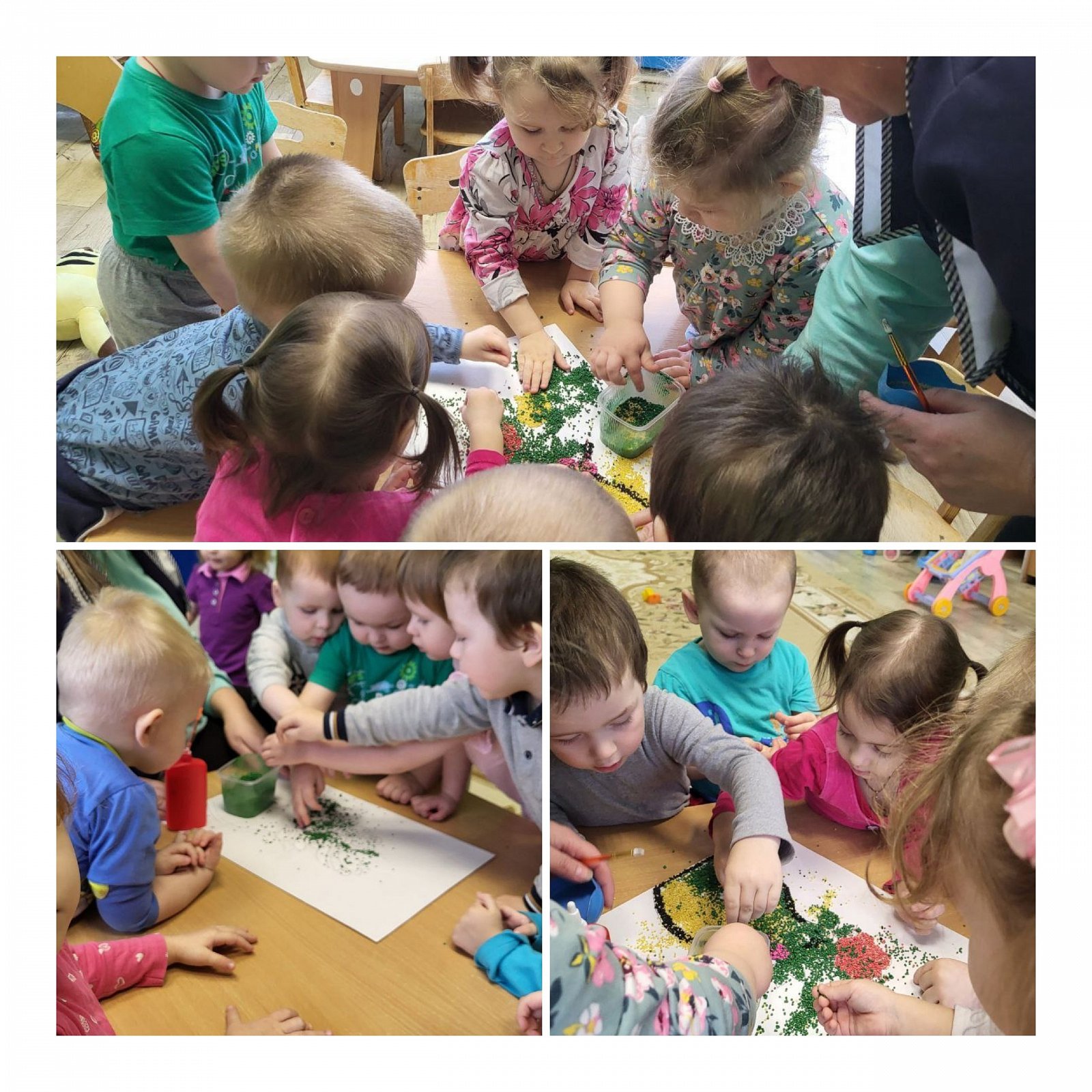 Вместе с воспитателем Рыбиной Екатериной Николаевной малыши изготовили коллективную поделку из крупы — "Цветы для мамы". Это был настоящий подарок, сделанный с любовью и заботой!