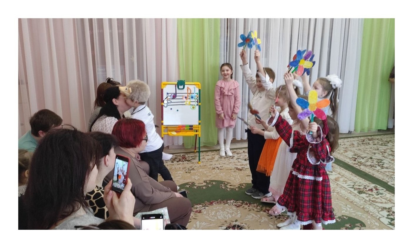 ❄️✨На мольберте были развешаны ноты, и каждой маме предлагалось выбрать ноту, чтобы определить, какой номер подготовили ребята. И каждая нота открывала для зрителей новый сюрприз! ????