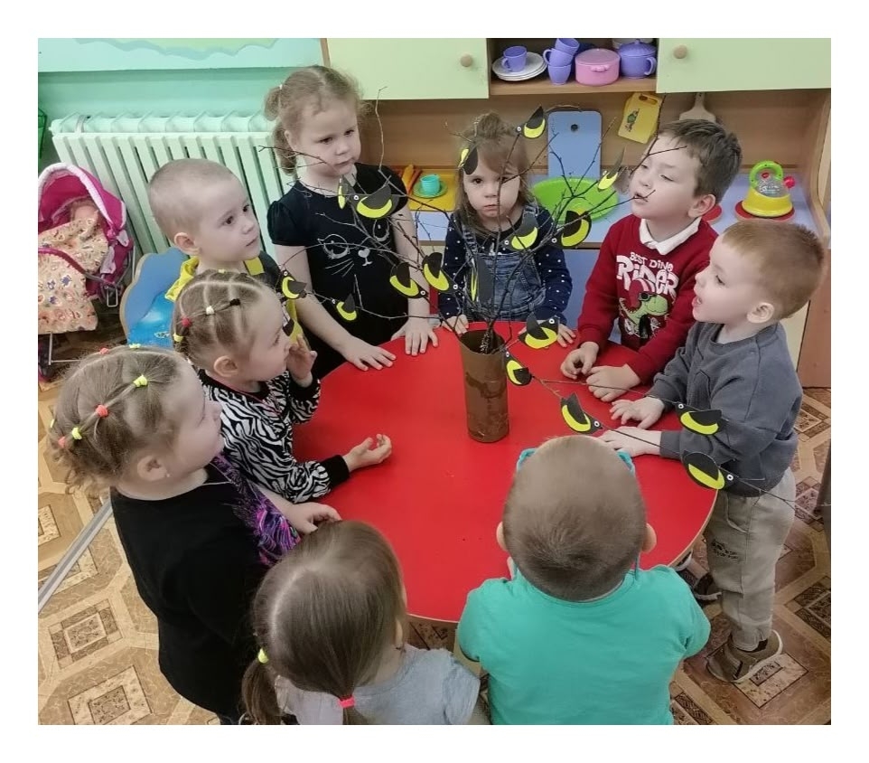 Ребята из группы «Цветик-семицветик» мастерили своих синичек и дружно посадили их на волшебную веточку.